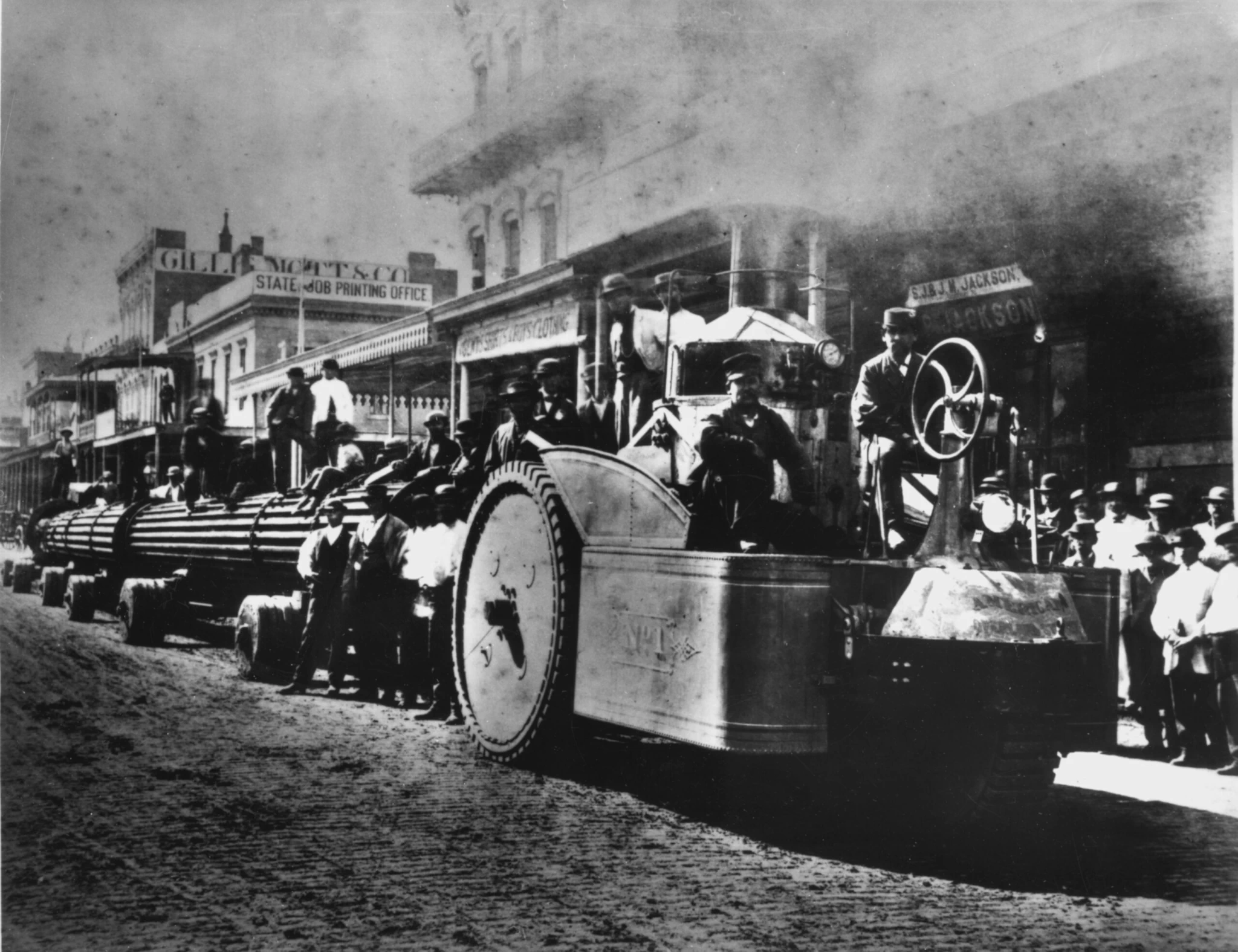 After being shipped by either rail or boat, the columns were offloaded at the Sacramento waterfront. They were then hauled approximately ten blocks to the building site by a steam-powered tractor. This tractor was a cutting-edge invention, though it moved only one mile per hour over the 0.75-mile route to the Capitol.